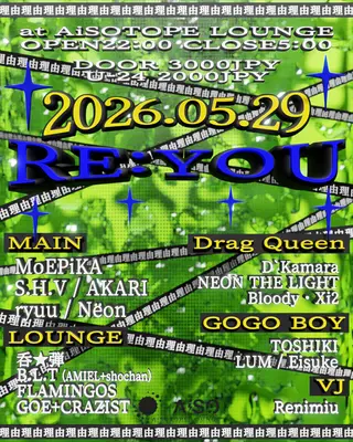 理由 on May 29, 2026 at Aisotope Lounge, Tokyo features MoEPiKA, S.H.V and ryuu (2) performing bass DJ sets.