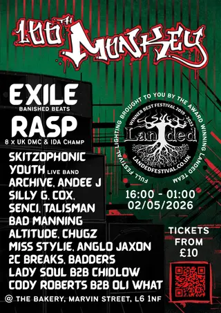 100th Monkey May 2nd Day and Night on May 2, 2026 at The Bakery, Liverpool features electronic music performances breakbeat DJ sets.