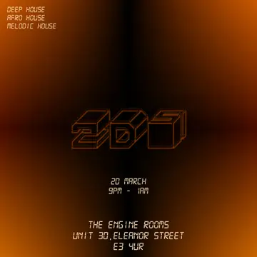 2 Dimensional Space takes place at The Engine Rooms Rehearsal Studios in London, United Kingdom on Friday, March 20, 2026. Deep House, Afro House.