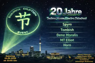 20 Jahre Equinox-Eruption-Event takes place at Golden Flamingo in Berlin, Germany on June 20, 2026. Techno and Electro sounds all night.