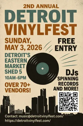 2nd annual Detroit Vinylfest on May 3, 2026 at Eastern Market, Detroit features electronic music performances techno DJ sets.