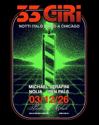 On March 12, 2026, Podlasie Club in Chicago will host "33 GIRI - NOTTI ITALO DISCO," a celebration of the vibrant Italo Disco genre that defined the dance floors of the '80s. Known for its intimate setting and eclectic programming, Podlasie Club has become a staple in Chicago’s electronic music scene, attracting both local and international talent. The venue's warm ambiance and retro aesthetics perfectly complement the nostalgic vibes of Italo Disco. Headlining the night is Michael Serafini, a key figure in Chicago's house music landscape, who infuses his sets with infectious energy and a deep appreciation for the genre's roots. Joining him are Nolia, recognized for their soul-infused electronic beats, and Pen Pals, a duo that brings a modern twist to classic sounds. Attendees can expect a night filled with pulsating synths, catchy melodies, and danceable rhythms, making it a fitting tribute to the enduring legacy of Italo Disco in a city synonymous with electronic innovation.