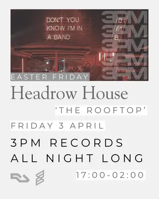 Experience 3PM All Night Long Headrow House Rooftop 2026, a significant moment in Leeds, United Kingdom's electronic music calendar on Friday, April 3, 2026, featuring 3PM RECORDS, Partridge, Fentonffp and 0 more artists. This event brings together artists and fans who share a passion for dance music culture and House, Tech House sounds.