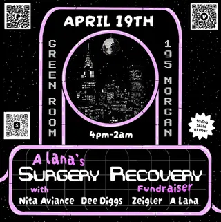 A lana, Nita Aviance, Dee Diggs, Ziegler takes place at Green Room NYC in New York City, United States on April 19, 2026. Featuring A lana, Nita Aviance, Dee Diggs, Zeigler. Techno sounds all night.