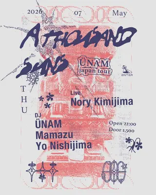 A Thousand Suns - ÜNAM japan tour - takes place at Enter Shibuya in Tokyo, Japan on May 7, 2026. Featuring ÜNAM, Mamazu, Yo Nishijima. Deep House and Downtempo sounds all night.