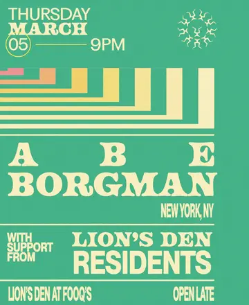 Set at Lion's Den, Abe Borgman 2026 brings together artists and fans in Miami on Thursday, March 5, 2026. This event brings together artists and fans who share a passion for dance music culture and electronic sounds.