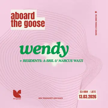 Aboard The Goose with Wendy + residents: A-Bril & Marcus Waxx takes place at TBA - North London in London, United Kingdom on Friday, March 13, 2026. Featuring Wendy Bkz, A-Bril, Marcus Waxx. Electronica.