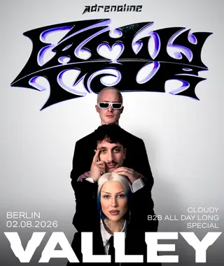 Adrenaline Family Tour : Cloudy b2b ALL DAY LONG Special on August 2, 2026 at Valley, Berlin features Cloudy, KUKO and Adrian Mills performing techno DJ sets.