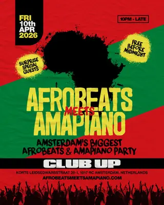 Club Up in Amsterdam, Netherlands presents Afrobeats Meets Amapiano – Everyone Free Before 12AM 2026, an event on Friday, April 10, 2026. This event brings together artists and fans who share a passion for dance music culture and electronic sounds. Positioned at the heart of the Amsterdam scene, the event defines the region's nightlife through authentic electronic sounds. It draws fans seeking authentic electronic music in Amsterdam. Club Up's setup supports electronic music events for audiences in Amsterdam and the surrounding region. The production is designed to showcase the depth and diversity of contemporary electronic music.