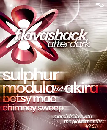 After Dark W/ Sulphur & More takes place at The Glove That Fits in London, United Kingdom on Friday, March 13, 2026. Featuring Sulphur, Betsy Mae, Modula (UK), Akira (Buntai). Garage, Tech House.