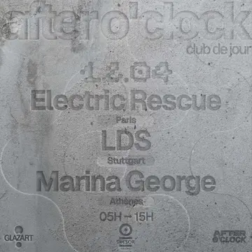AFTER O'CLOCK X TRESOR: LDS, Marina George, Electric Rescue takes place at Glazart in Paris, France on Sunday, April 12, 2026. Featuring LDS, Marina George, Electric Rescue. Techno.