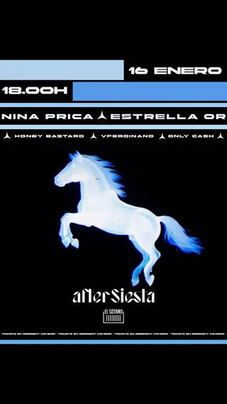 AFTERSIESTA: Nina Prica, ESTRELLA OR, Honey Bastard, Vferdinand, Only Cash on January 16, 2026 at EL SÓTANO, Madrid features ESTRELLA OR performing DJ sets.
