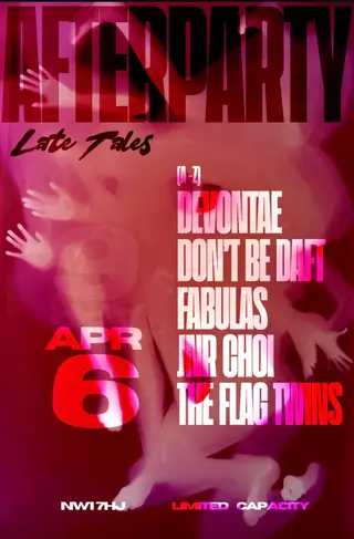 AFTERZZZ takes place at Jungla London in London, United Kingdom on April 6, 2026. Featuring Devontae, THE FLAG TWINS. Tech House sounds all night.