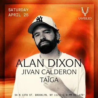 Experience Alan Dixon at UNVEILED with Jivan Calderon and Taiga 2026, a significant moment in New York, United States's electronic music calendar on Saturday, April 25, 2026, featuring Alan Dixon and Taiga. This event brings together artists and fans who share a passion for dance music culture and House, Afro House sounds.