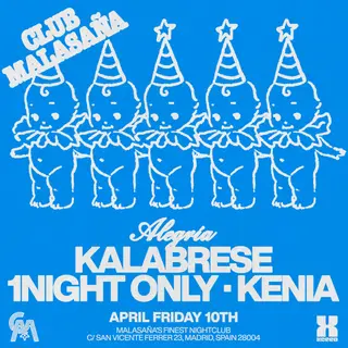 Alegría feat. Kalabrese + 1Night Only + Kenia on April 10, 2026 at Club Malasaña, Madrid features Kalabrese, 1Night Only and Kenia performing house DJ sets.