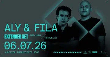 Aly & Fila [Extended Set] on The Roof takes place at Superior Ingredients in New York City, Unknown on Sunday, June 7, 2026. Featuring Aly & Fila. Trance.