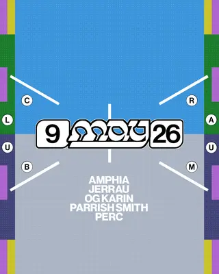 Amphia, Jerrau, OG Karin, Parrish Smith, Perc on May 9, 2026 at CLUB RAUM, Amsterdam features Amphia, Jerrau, OG Karin, Parrish Smith and Perc performing DJ sets.