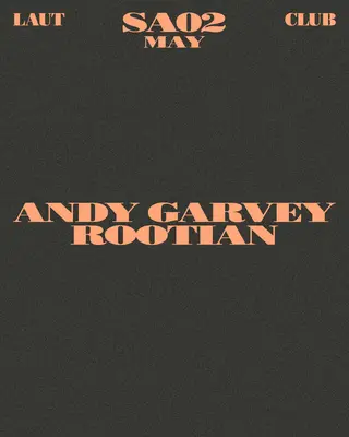 Andy Garvey + Rootian takes place at LAUT in Barcelona, Spain on May 2, 2026. Featuring Andy Garvey, Rootian. Techno and Club sounds all night.