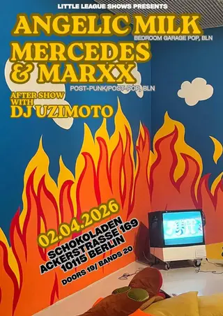 angelic milk, Mercedes & Marxx takes place at Schokoladen in Berlin, Germany on April 2, 2026. Pop and Post-Punk sounds all night.