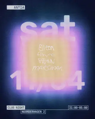 ANTIA CLUB NIGHT takes place at ANTIA on April 11, 2026. Featuring Eileen (NL), Feryne, Marsman. House and Italo Disco sounds all night.