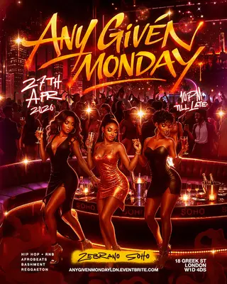Any Given Monday – No Work Monday Hip Hop R&B Afrobeats & Bashment takes place at Soho Zebrano in London, United Kingdom on April 27, 2026.