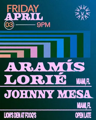 Aramís Lorié, Johnny Mesa on April 3, 2026 at Lion's Den, Miami features Aramís Lorié performing DJ sets.