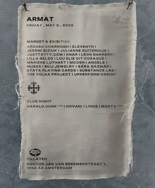 ARMAT takes place at TILLATEC in Amsterdam, Netherlands on May 8, 2026. Featuring Harald Uunk, Hovani. Techno sounds all night.