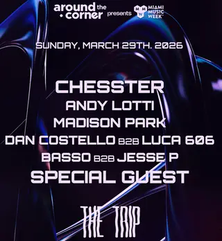 Set at The Trip, Around The Corner: Chesster, ANDY LOTTI, MADISON PARK, Dan Costello, LUCA 605, BASSO, JESSE P 2026 brings together artists and fans in Miami on Sunday, March 29, 2026, featuring Chesster and Dan Costello. This event brings together artists and fans who share a passion for dance music culture and House, Tech House sounds. The Trip has hosted House events in Miami as part of the area's regular club programming. It draws 2 artists and fans seeking authentic House music in Miami. Designed for a discerning audience, The Trip's programming draws fans of House music across Miami. The production is designed to showcase the depth and diversity of contemporary electronic music.