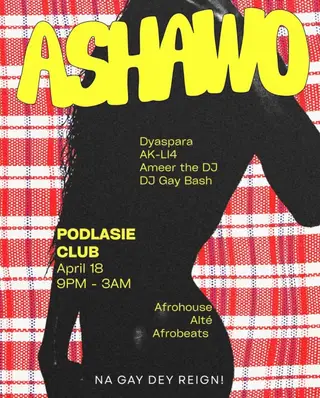 ASHAWO takes place at Podlasie Club in Chicago, United States on April 18, 2026. Afrobeat and Afro House sounds all night.