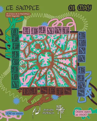 Asnam x Teenage Menopause Records x Minima Moralia present: Heimat, LUNA LIAS & Officium on May 1, 2026 at Le Sample, Paris features Heimat, LUNA LIAS and Officium performing experimental DJ sets.