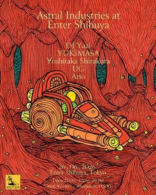 Astral Industries takes place at Enter Shibuya in Tokyo, Japan on June 26, 2026. Featuring DJ Yazi, YUKIMASA, Yoshitaka Shirakura, Ario. Techno and Experimental sounds all night.