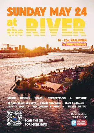 At The River - 1e Pinksterdag takes place at TBA - De Maaskantine, Kralingen in Rotterdam, Netherlands on May 24, 2026. Featuring Radius, Steven Pieters, Ben Diggins, Space Arp Pete and 5 more. House and Funk / Soul sounds all night.