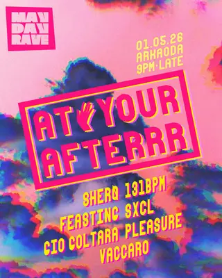 AT YOUR AFTER [may day rave] on May 1, 2026 at arkaoda Berlin, Berlin features 131bpm, Feasting, Gio Goltara, Pleasure, Sherø, SXCL and Vaccaro performing house DJ sets.