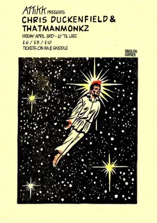 Attikk presents: Chris Duckenfield + thatmanmonkz takes place at Hagglers Corner in Sheffield, United Kingdom on April 3, 2026. Featuring Chris Duckenfield, thatmanmonkz. House and Disco sounds all night.