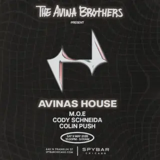 Avina's House 3 Year Anniversary on May 9, 2026 at Spybar, Chicago features Cody Schneida performing house DJ sets.