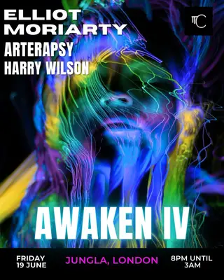 AWAKEN IV on June 19, 2026 at Jungla London, London features Elliot Moriarty, Arterapsy and Harry Wilson performing progressive house DJ sets.