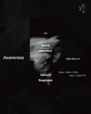 Awareness is set to take place at Kagurane in Tokyo, Japan on May 15, 2026. The event features Numb, an artist from Japan known for creating music within the techno genre. Kagurane will present a lineup focused on both techno and bass, showcasing the versatility and range of these electronic music styles.
