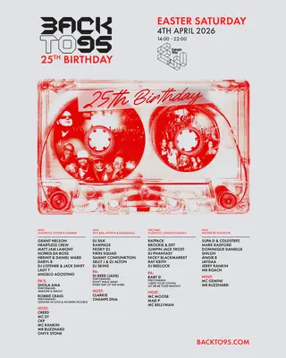 Backto95 25th Birthday Party on April 4, 2026 at Eutopia Whs, London features electronic music performances DJ sets.