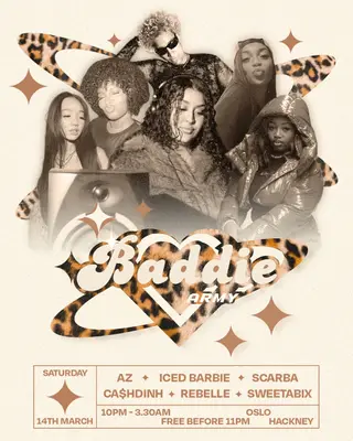 Baddiie Army takes place at Oslo Hackney in London, United Kingdom on March 14, 2026. Club and Afrobeats sounds all night.