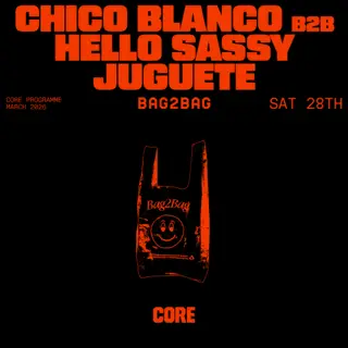 bag2bag feat. Chico Blanco b2b Hello Sasy takes place at Core in Madrid, Spain on March 28, 2026. Featuring Chico Blanco, Hello Sasy, Juguete. Techno and Electronica sounds all night.
