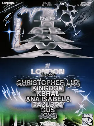 Baile TRAMA with CHRISTOPHER LUZ, KINGDOM ᯓ⭑ 2 ROOMS on March 27, 2026 at Omeara, London features electronic music performances baile funk DJ sets.