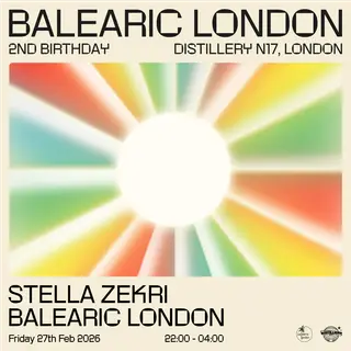 Balearic London 2nd Birthday with Stella Zekri on February 27, 2026 at Distillery N17, London features Stella Zekri, Balearic London and göo (1) performing electronic DJ sets.