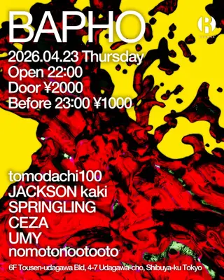 BAPHO takes place at R Lounge in Tokyo, Japan on April 23, 2026. Featuring JACKSON kaki, ceza. Baile Funk sounds all night.