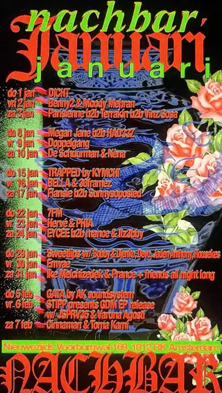 More upcoming electronic music events hosted at nachbar in Amsterdam.