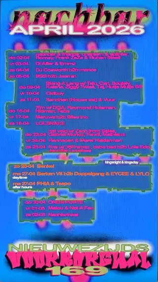 More upcoming electronic music events hosted at nachbar in Amsterdam.