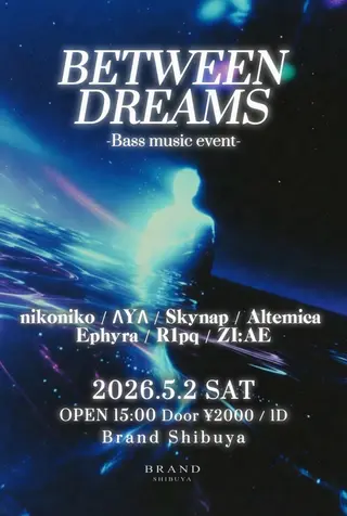 BETWEEN DREAMS -Bass music event- on May 2, 2026 at BRAND SHIBUYA, Tokyo features electronic music performances bass DJ sets.