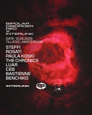 Bipolar Disorder Records x INTERLINK takes place at TILLATEC in Amsterdam, Netherlands on June 12, 2026. Featuring Steffi, Rosati, Paula Koski, The Chronics and 3 more. Techno sounds all night.