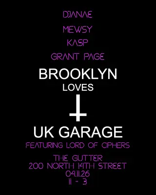BK Loves UKG Monthly Party takes place at The Gutter in New York City, United States on April 11, 2026. Featuring DJanae, Lord of Ciphers. Drum & Bass and Garage sounds all night.