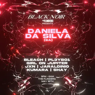 BLACK NOIR presents: Daniella da Silva [SA] takes place at The Flinders in Sydney, Australia on May 16, 2026. Featuring Daniella da Silva, SHAY, Bleach, Kumara (PA). Techno sounds all night.