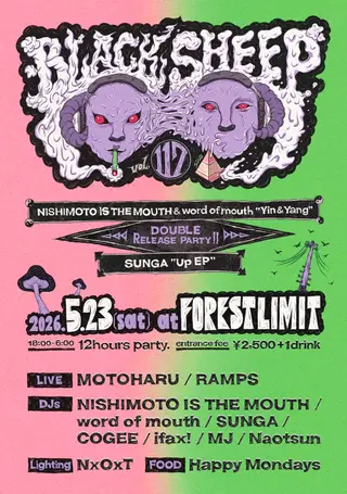 BLACKSHEEP vol.117 takes place at Forestlimit in Tokyo, Japan on May 23, 2026. Featuring Sunga, COGEE, ifax!, MJ (JP). Bass and Experimental sounds all night.